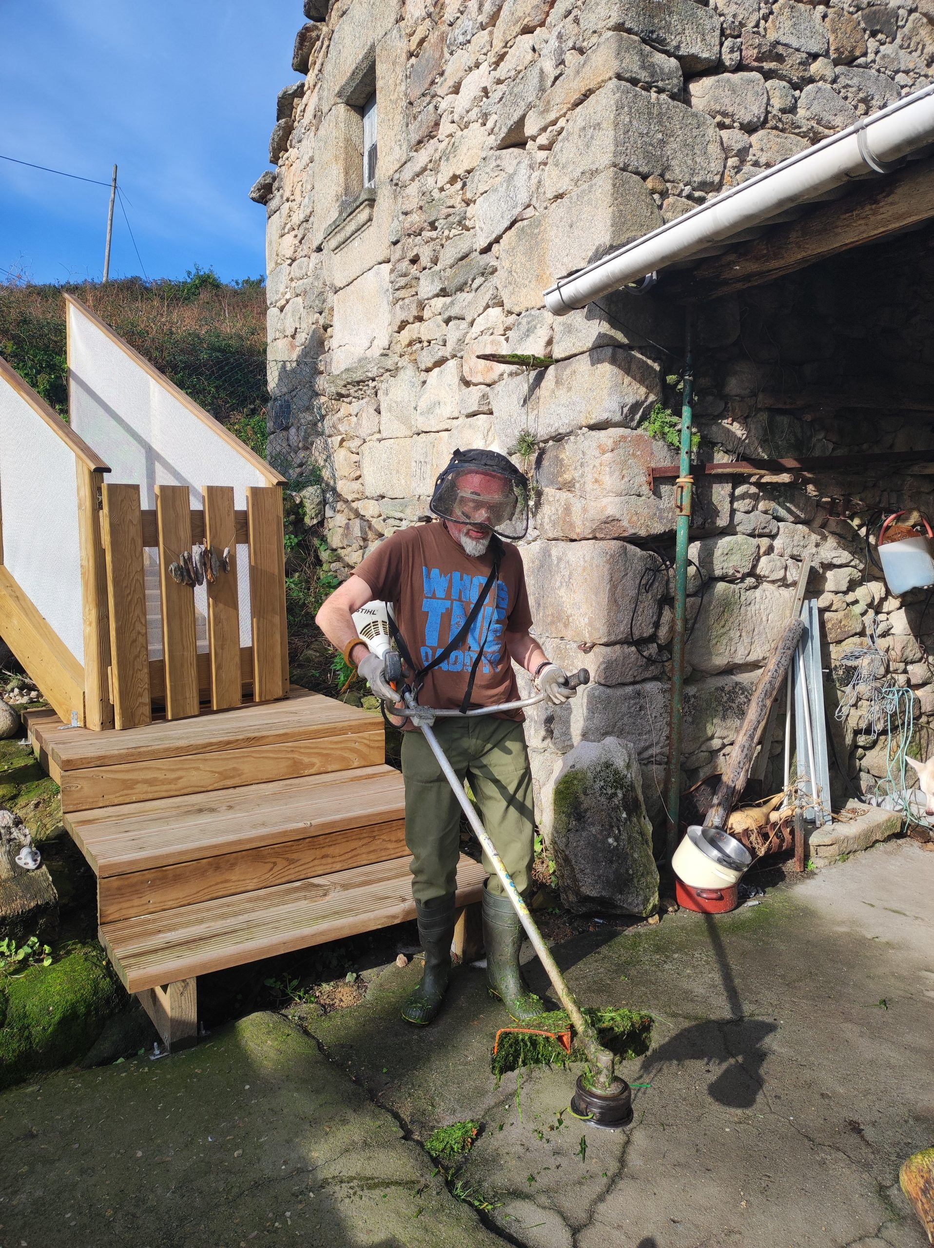 Getting the strimmer working again became more important as the land around the house was starting to look jungle-like. The aim is to hard-surface over everything except for the veggies at some point, but for now, it’s a case of keeping the weeds down and stopping the ferns from coming back. I think there’s a legal requirement to keep land around a property regularly cut back because of the fire risk in this area, but I think we’re doing quite a good job of reclaiming the land from ferns and ivy which had taken such a hold over it before we moved in.