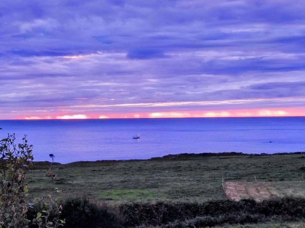 And here’s a fishing boat just before the sun comes up. It still has its light on. It’s quite nice to see the fishing boats with their lights on at night as they sort of twinkle in the dark.