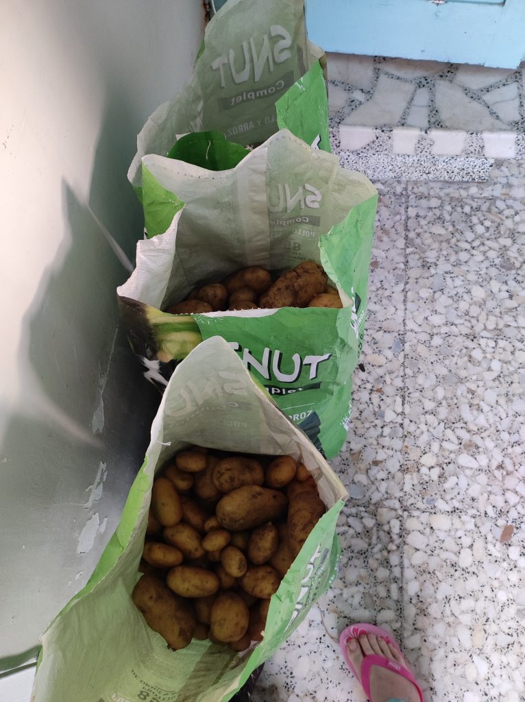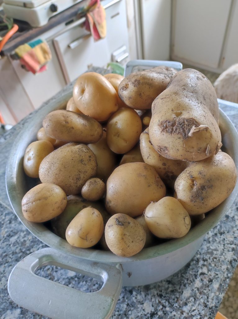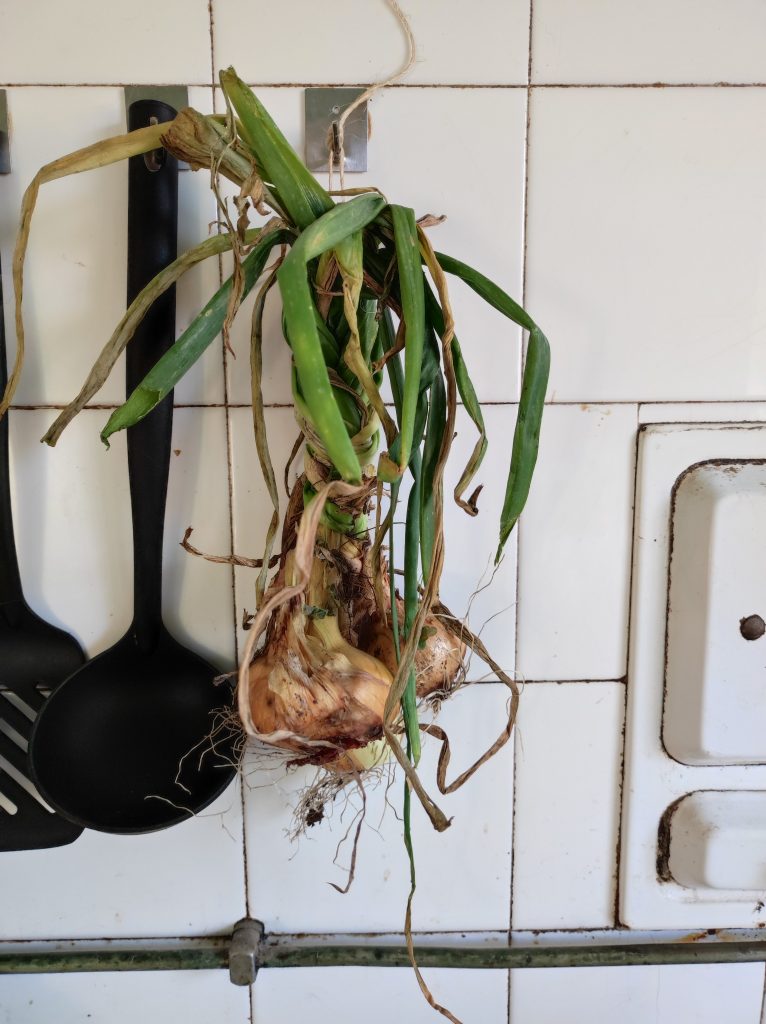 We’ve got three sacks of potatoes which we are drying out and the onions are drying out – with the exception of the ones I macramed together 😉 The aim is to store these, we’ve currently got the potatoes in the box room, which should be OK. I’,m not sure what rodents we have downstairs.