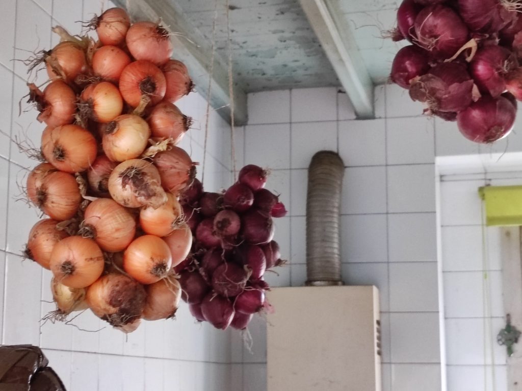 While our onion crop perhaps wasn’t as large as we’d have hoped (the onions themselves are quite small), it will certainly keep us going for a while!