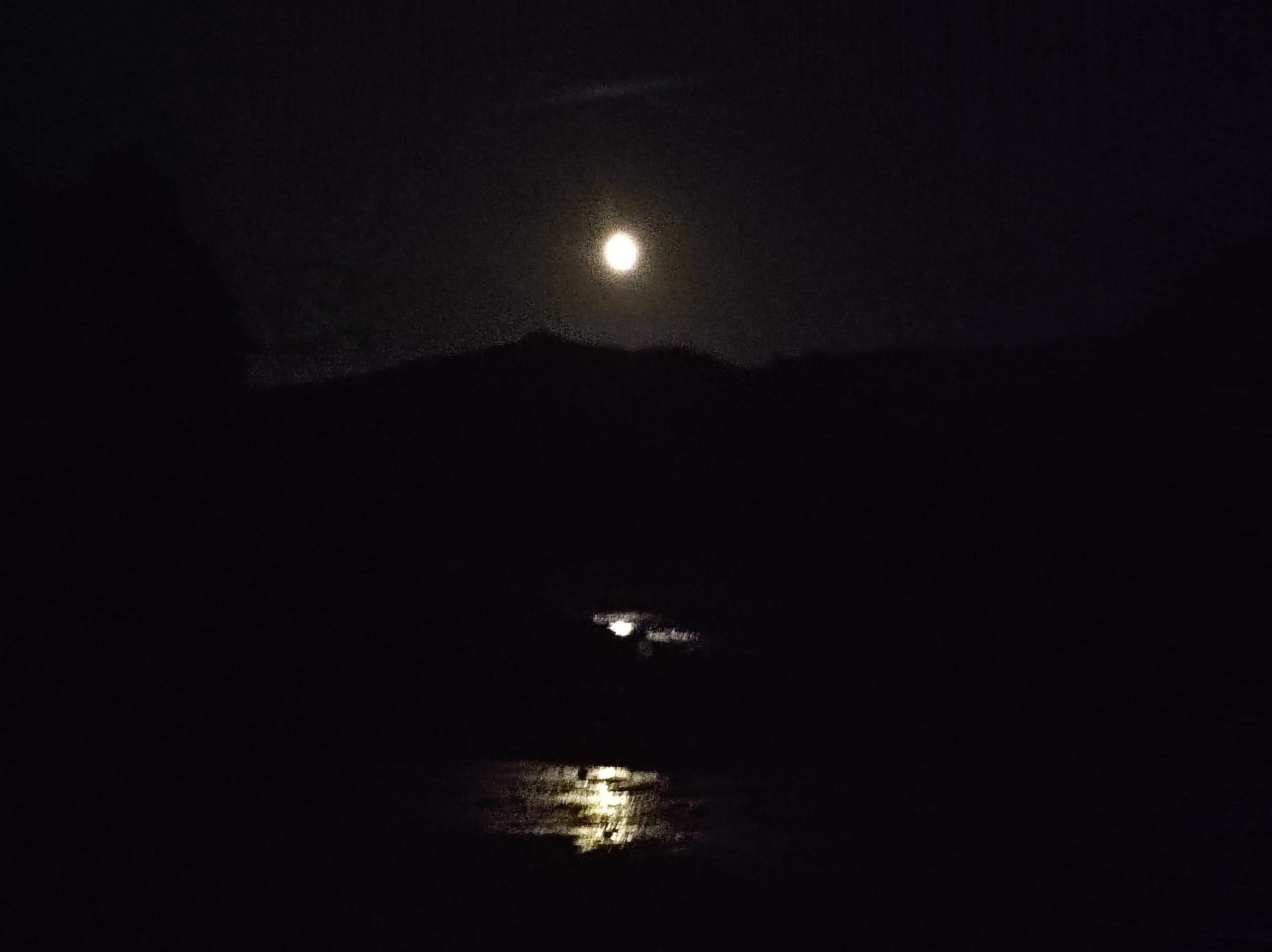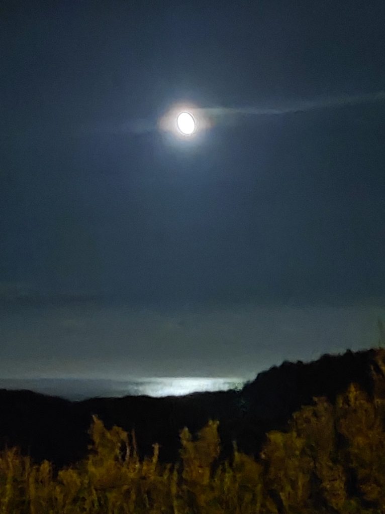 Walking back up from the beach, however, we could see the moon again. After several false starts when I had the camera facing me rather than the moon, I was able to take some fuzzy photos!