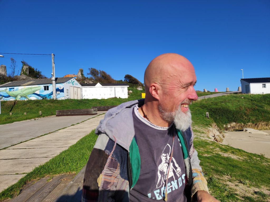 After battling our way through the hords of, er, one other shopper, we went for a picnic at the top of a hill looking down over Burela. We’d been here before, however last time it was so windy our food kept blowing away and we had to move to a more sheltered place.