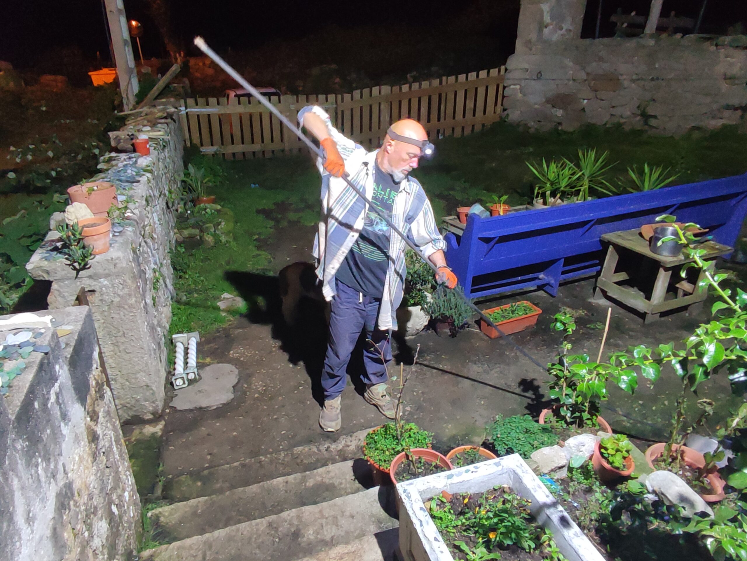 Well – having rediscovered Daisy’s luminous ball and enjoyed a couple of mins playing outside, her ball went down a little drainage tunnel under the front of the house and got stuck.