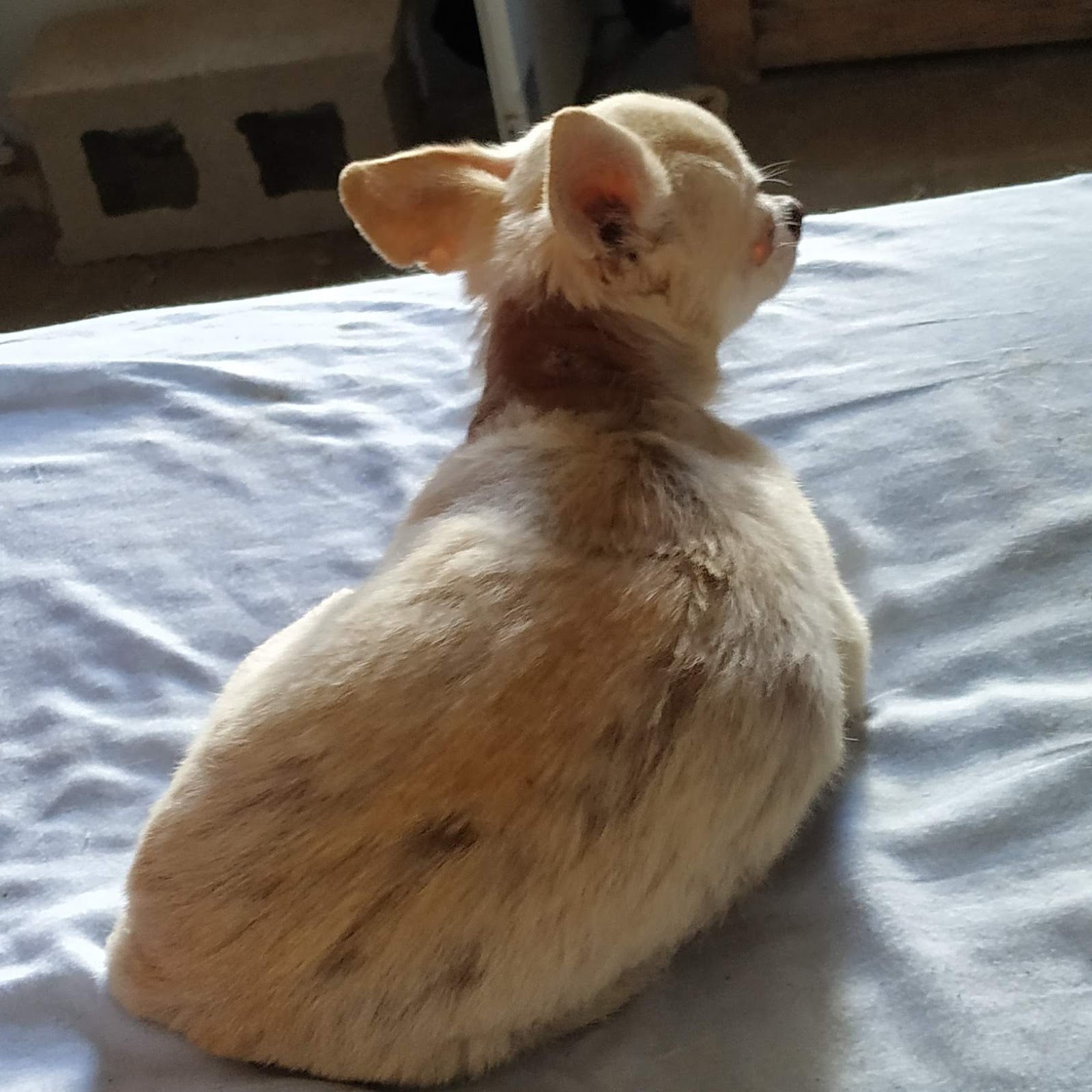 And poor Pixie’s fur is still not coming back. The vet can’t find any medical reason for the fur loss, so we’ve got some vitamin supplements which may help – but I think it’s unlikely. The vet has said to keep her out of the sun, and to make a little jacket or coverall to cover her if she does go out.